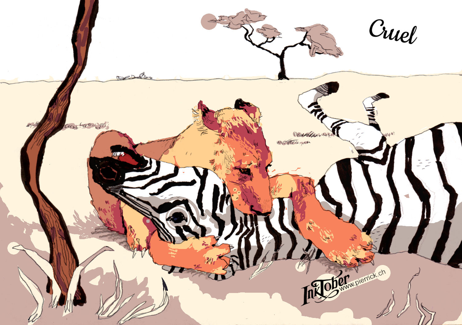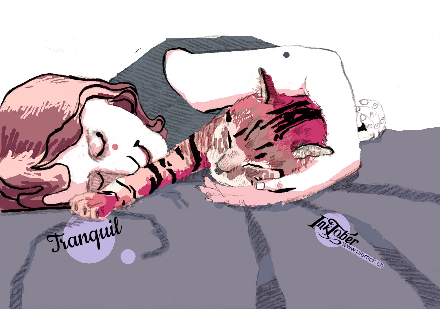 Dessin académique, avec des touches de couleurs numérique des plus agressives. Les temps indiqués ne tiennent pas compte de la mise en couleur, réalisée après coup.