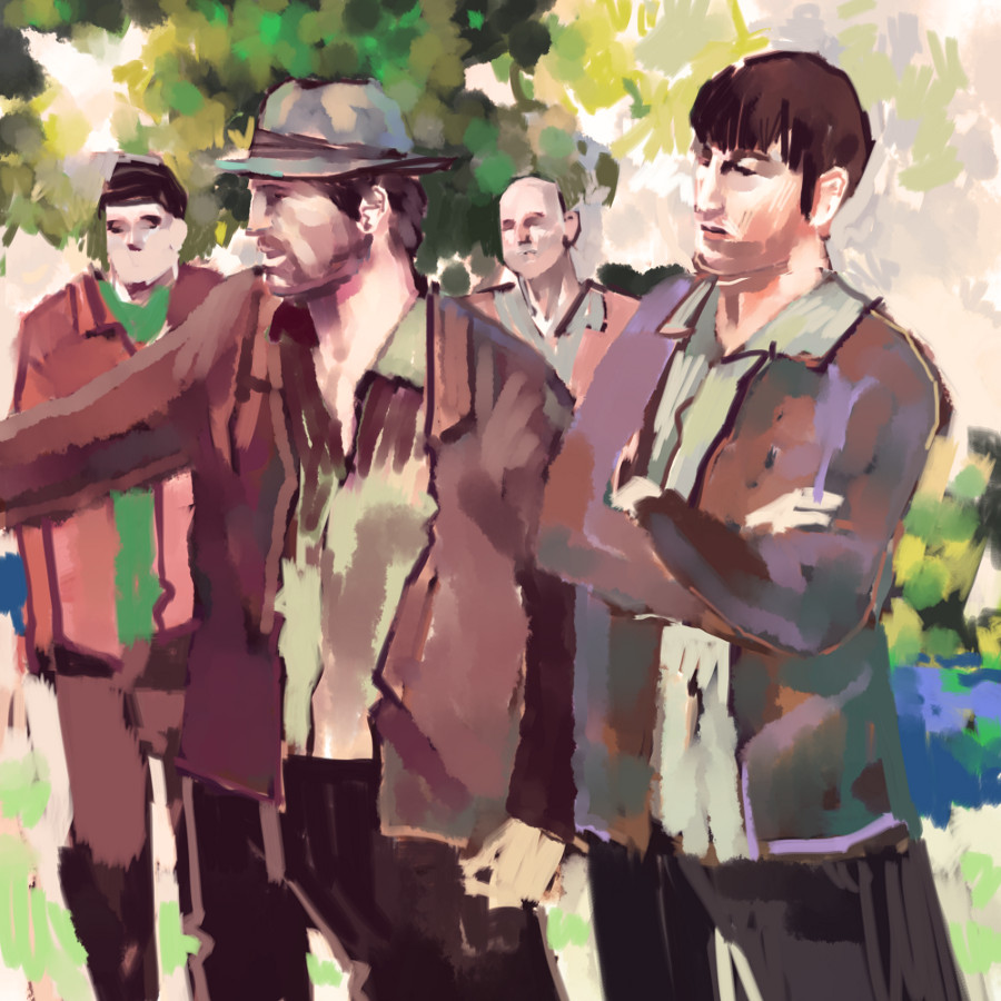 Les images suivantes n'ont aucun rapport : un bluesman pour un essai de peinture avec du café soluble (mélangé à deux gouttes d'eau ^_^). Un portrait de Serge Gainsbourg. La dernière est un cadeau d'anniversaire pour mon frère (une peinture numérique sur des photographies transformées).